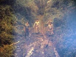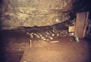 Figura 4: Campamento de Rizzo y estratigrafía en la Gruta India, año 1968