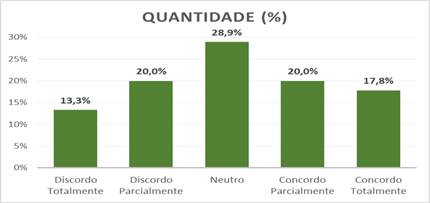 Acerca das condições inadequadas de trabalho, que incluem o uso excessivo de recursos naturais renováveis e não renováveis, serem consequências das escolhas individuais de consumo, a maioria (35,6%) afirmaram neutralidade, enquanto 22,2% concordaram parcialmente e 17% concordaram totalmente (Gráfico 6).