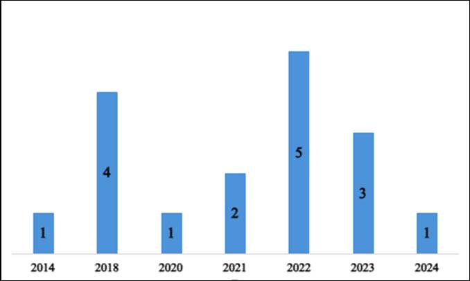 Sousa; Sousa; Carvalho (2014), Alves et al. (2018), Melo; Leao (2018), Moreira (2018), Mueller; Rizzatti Junior (2018), Souza et al. (2020), Costa; Sousa (2021), Borges; Dinis; Barros (2022), Dias; Silva (2022), Silva et al. (2024) |