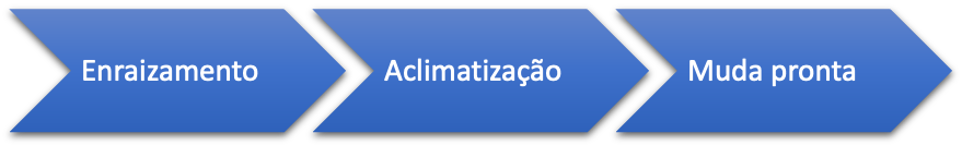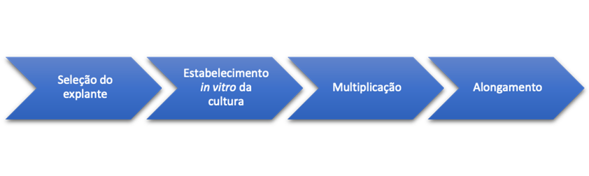 Deste modo, as etapas estão compreendidas em: seleção do explante, estabelecimento in vitro da cultura, multiplicação, alongamento, enraizamento, aclimatação, até obter a muda pronta, conforme veremos de forma detalhada nas próximas subseções.
