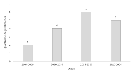 Figura 1: Distribuição quadrienal das publicações relacionadas ao tema entre os anos de 2004 e 2024.