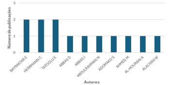 No que se refere aos autores mais relevantes nesta área de pesquisa, constatou-se que as publicações estão distribuídas entre diversos pesquisadores, sem uma concentração em poucos nomes (Figura 4).