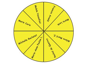 A atividade foi desenvolvida em uma Escola da Rede Estadual de São Paulo e envolveu 32 estudantes do terceiro ano do Ensino Médio. O levantamento de dados ocorreu em duas etapas: primeiro, por meio de um questionário, a fim de avaliar conhecimentos prévios das/os alunas/os sobre mulheres importantes na Ciência. O questionário continha 4 perguntas, sendo 3 dissertativas (resposta livre) e 1 de múltipla escolha. Todos os questionários foram aplicados de modo a garantir o anonimato nas respostas. Posteriormente, elaborou-se o conteúdo para a pesquisa estruturada, livre de tendências indicativas, sem interferência de sugestividade, a partir de um disco com 4 nomes de cientistas e 4 nomes de mulheres conhecidas em diversas áreas (Figura 2), conforme as propostas descritas por Neto (2022).