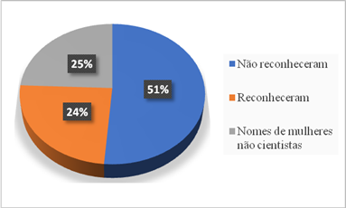 Mesmo quando as/os estudantes relataram já terem ouvido algo sobre alguma cientista, deixaram claro que a abordagem havia sido superficial, demonstrando que a relação entre mulheres e Ciência é pouco difundida e discutida no ambiente escolar, sem uma abordagem contextual histórica.