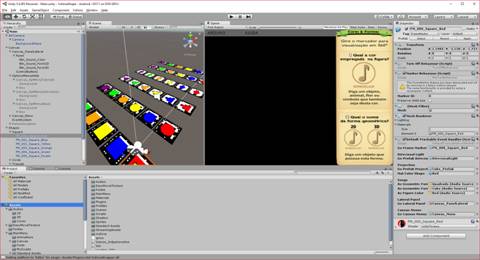 A Figura 4 mostra o processo da construção da interface e a ligação com os marcadores e os códigos de cada cor e forma geométrica.