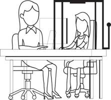Diretriz 1: Determinar boa postura na posição sentada: altura do assento ajustável com a altura do usuário; manter a cadeira perto da bancada; parte inferior das costas apoiada; antebraço e punho em ângulo reto com o braço; encosto de braço na altura do cotovelo e da mesa; punho sem dobrar; ombros relaxados; mouse em frente ao usuário. Os assentos com rodízios propiciam maior estabilidade e facilitam a movimentação do usuário, bem como as regulagens de apoio de braços, encostos e de altura do assento, que permitem maior segurança e conforto (Gomes, 2015). A recomendação ergonômica é tratada sobre alinhamento, postura e ângulos.