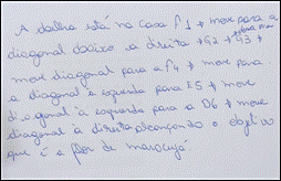 Figura 2 – Tabuleiro e o esboço de um algoritmo descritivo, da esquerda para a direita, respectivamente, elaborado por uma das duplas que participaram do curso.