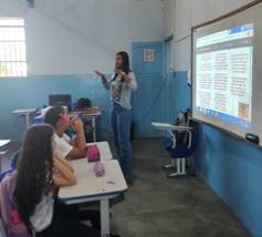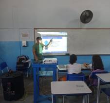 Apesar da natureza mais direta da transmissão de informações, as perguntas e discussões são incentivadas, de modo que os estudantes puderam expressar dúvidas, fazer questionamentos e participar ativamente do processo de aprendizagem. Para a realização da exposição, utilizamos matérias de como computador e Datashow para apresentação de slides com imagens e vídeos sobre os conteúdos.