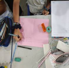 O terceiro momento da oficinase configurou enquanto parte prática, haja vista que foi solicitado aos estudantes que confeccionassem uma estrofe de cordel sobre a temática aquecimento global, detalhada na imagem 3 e uma xilogravura para compor a capa do cordel. Para esse momento, disponibilizamos: folhas de ofício, espuma, hidrocores, tinta preta e papel emborrachado.