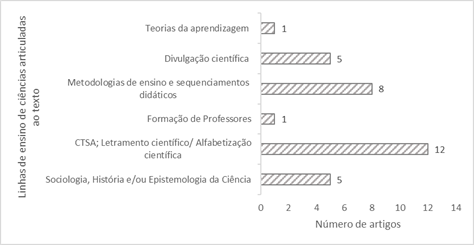 Figura 3 - Gráfico referente às Linhas de Pesquisa em Ensino de Ciências versus número de artigos.