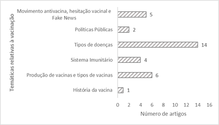 Figura 4 - Gráfico referente às temáticas relativas à vacinação versus número de artigos.