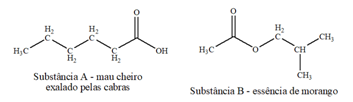 Questão 2. (Cesgranrio-RJ-modificada). As estruturas das substâncias A e B representadas a seguir, têm odores bem distintos e fórmulas moleculares idênticas, portanto, são isômeros. O tipo de isomeria que se verifica entre as substâncias A e B é: