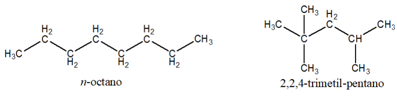 Questão 4. (ENEM-2012-modificada). Octanagem corresponde ao índice de resistência à detonação, em que o combustível é constituído por hidrocarbonetos contendo 8 átomos de carbono, cujas cadeias carbônicas são menores e ramificadas, como o 2,2,4-trimetilpentano. Marque a alternativa correta que representa o tipo de isomeria existente entre o n-octano e 2,2,4-trimetil-pentano.