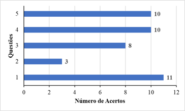 Após a análise das respostas do Questionário B, a taxa de acertos foi superior a 50%, com exceção da questão 02 (Figura 4).