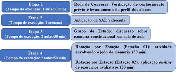 Figura 1 – Etapas do ensino de isomeria constitucional no modelo híbrido.