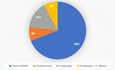 Um outro aspecto analisado foi o segmento educacional de aplicação das pesquisas realizadas pelos autores. No gráfico 1, mostrado abaixo pode-se notar que a maioria das pesquisas realizadas foi no segmento do Ensino Médio totalizando 69%.